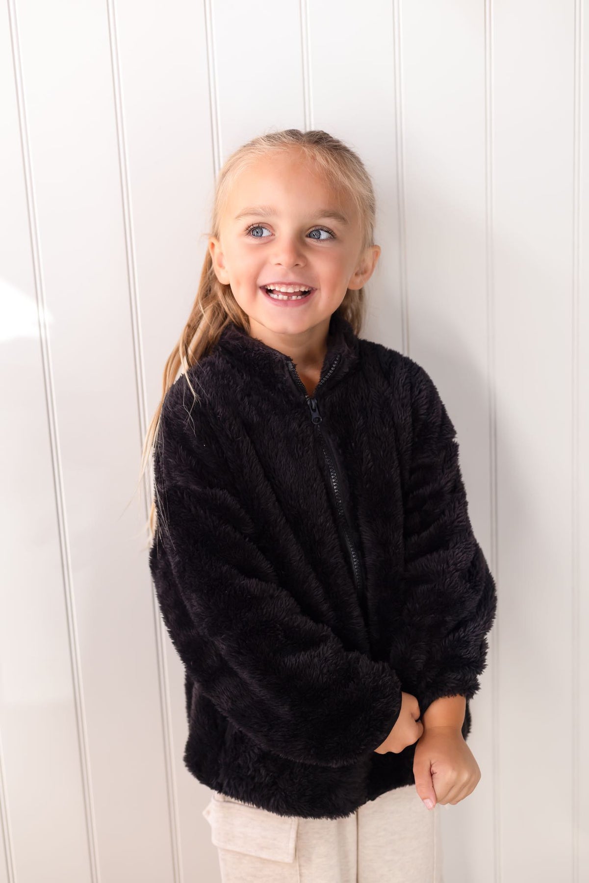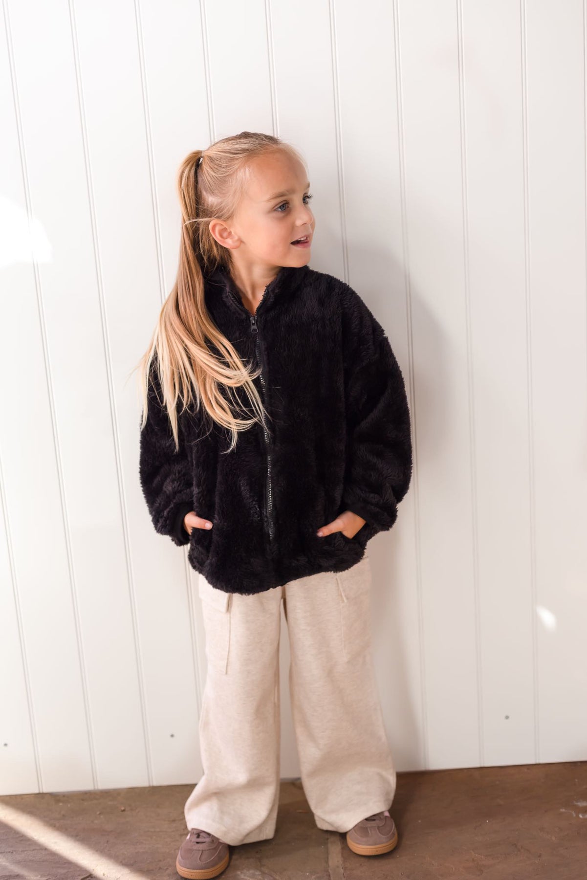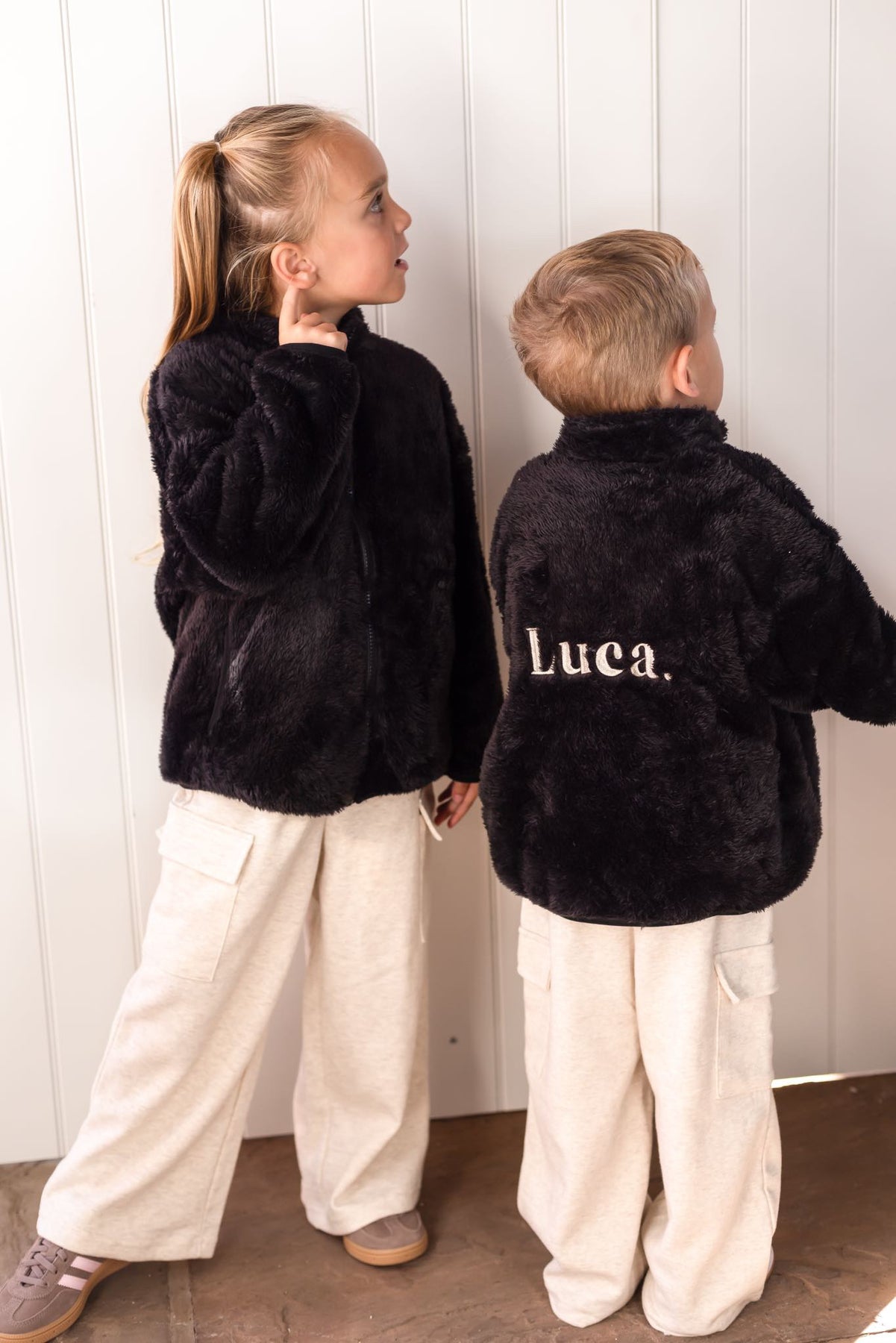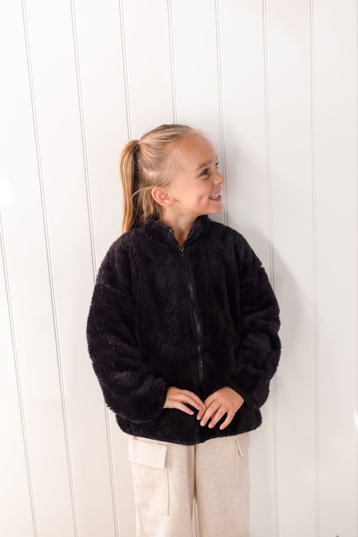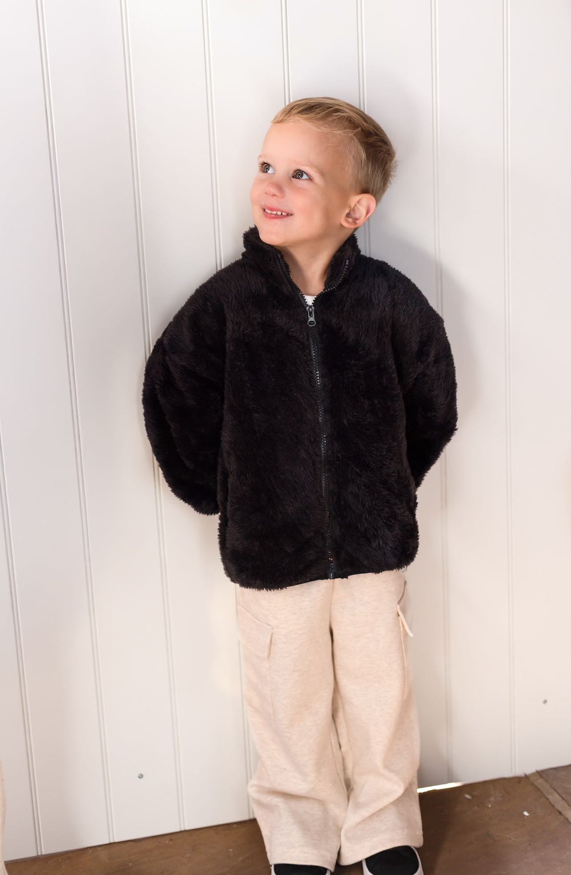A super cute and cosy Teddy Jacket with pocket and zip detailing.