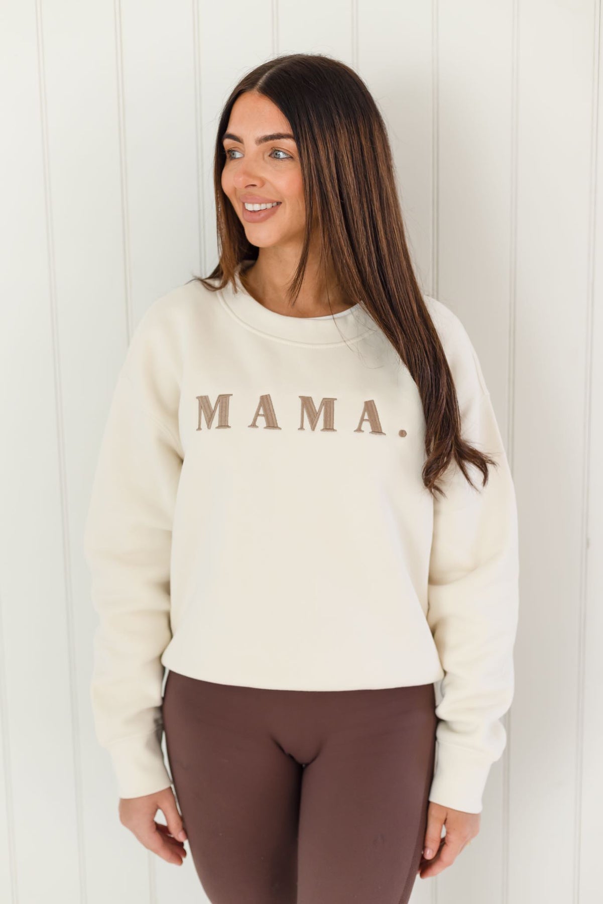 Our brand-new MAMA signature sweatshirt is a timeless classic, embroidered in rich chocolate thread for a beautifully subtle finish. Each piece is made to order, giving you the option to personalise the design — whether that’s adding a name, location, or special detail to make it uniquely yours.