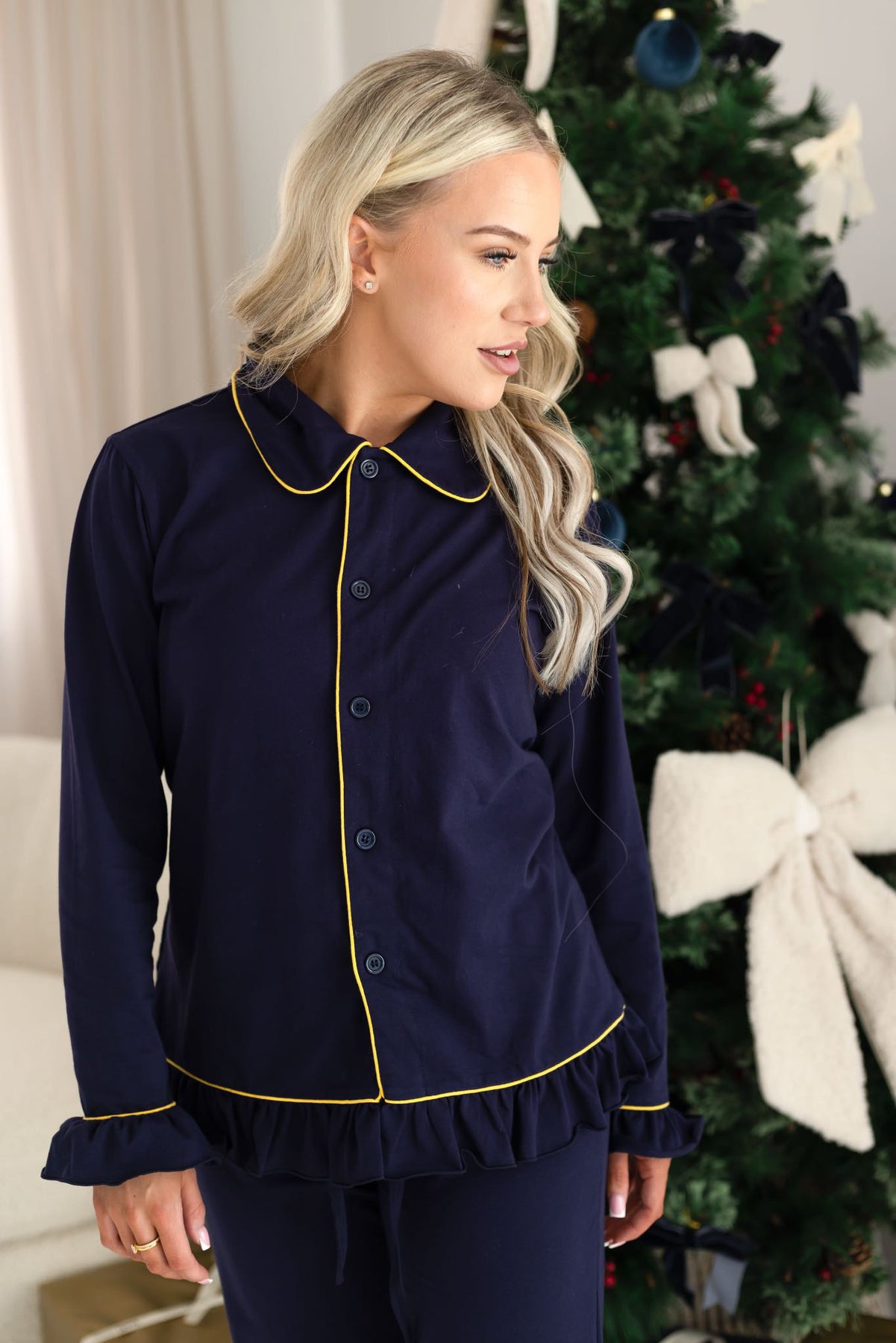 🎄✨ Women’s Matching Christmas Set – Navy and liquid gold Trim