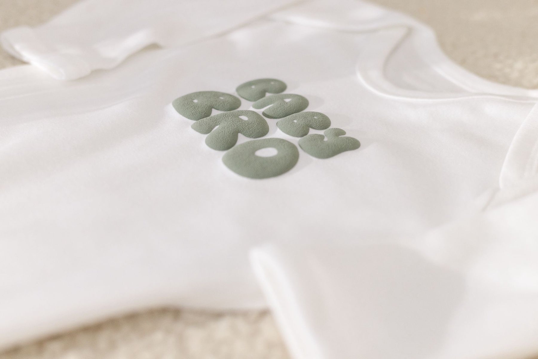 Made from 100% cotton. The bubble print is the same as the t-shirt and sweatshirt option, the item white colour is different like the image.