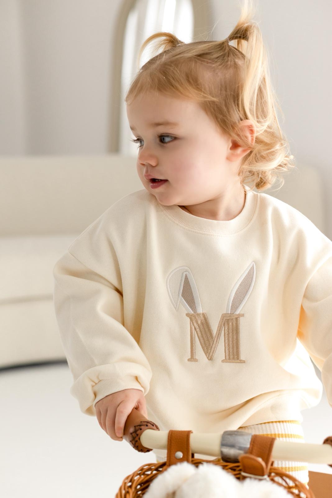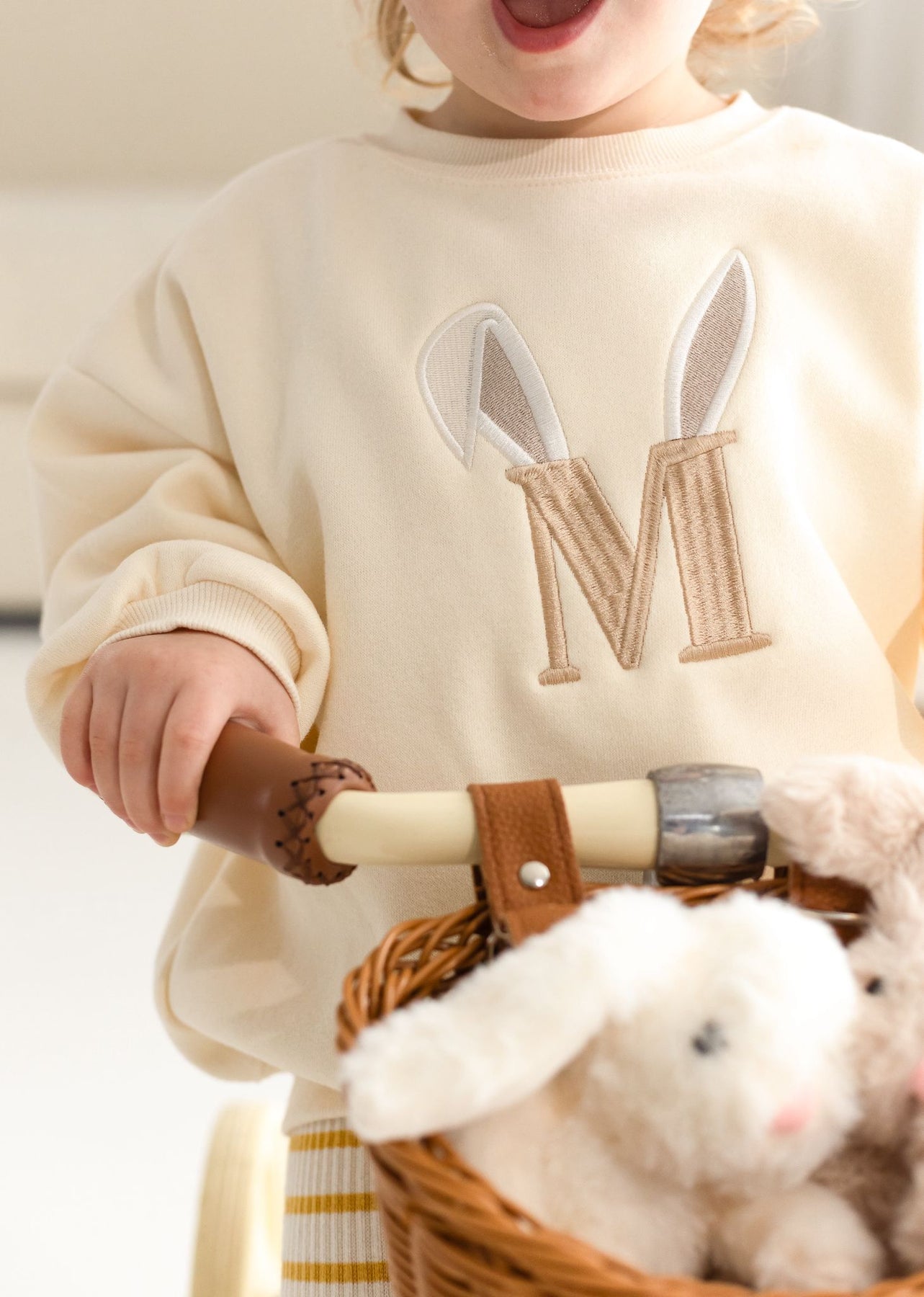 Meet our new Vanilla Jumper, designed with comfort and effortless style in mind. Featuring a large personalised initial on the front, finished with sweet bunny ears, this piece adds a playful yet timeless touch to a classic wardrobe staple.