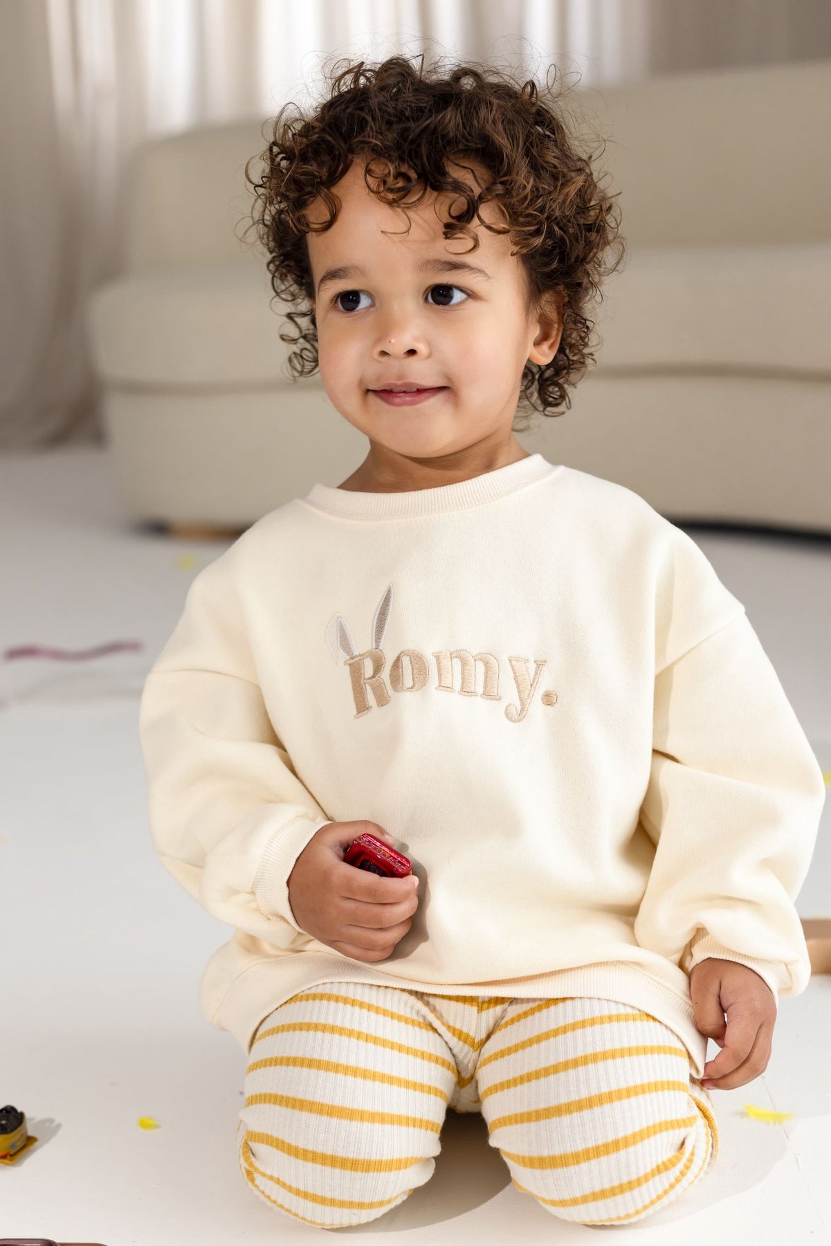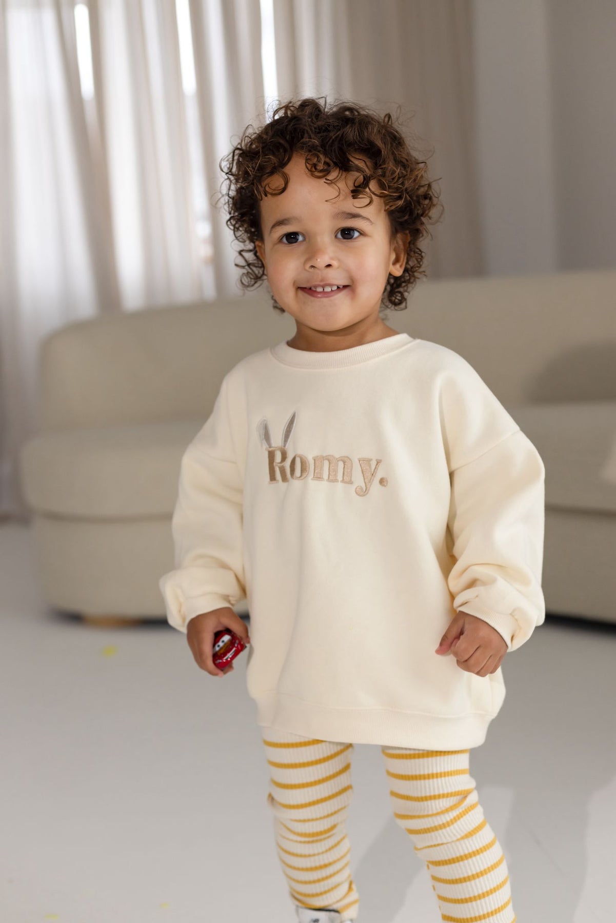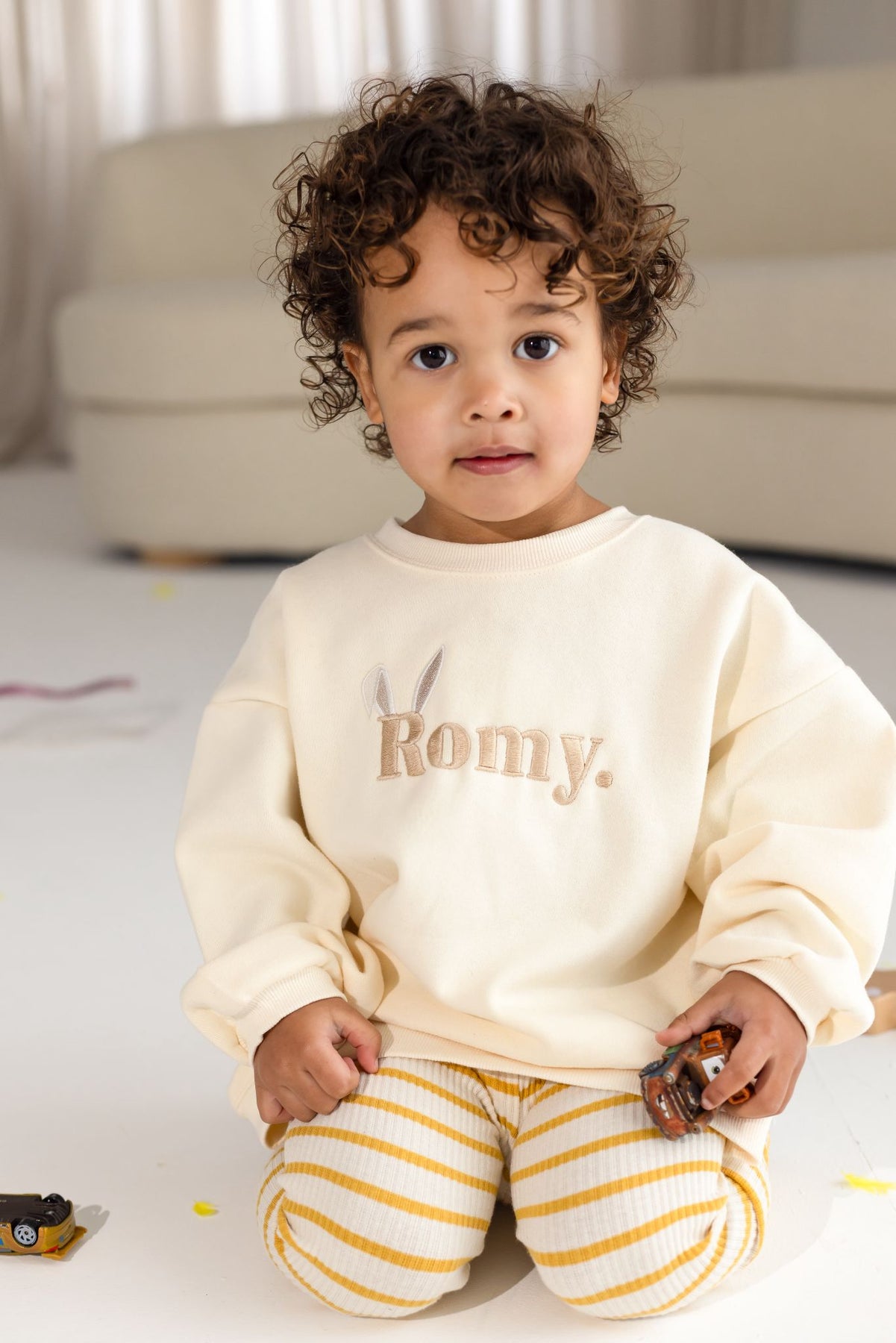 Meet our new Vanilla Jumper, designed with comfort and effortless style in mind. Featuring your little ones name on the front, finished with sweet bunny ears, this piece adds a playful yet timeless touch to a classic wardrobe staple.