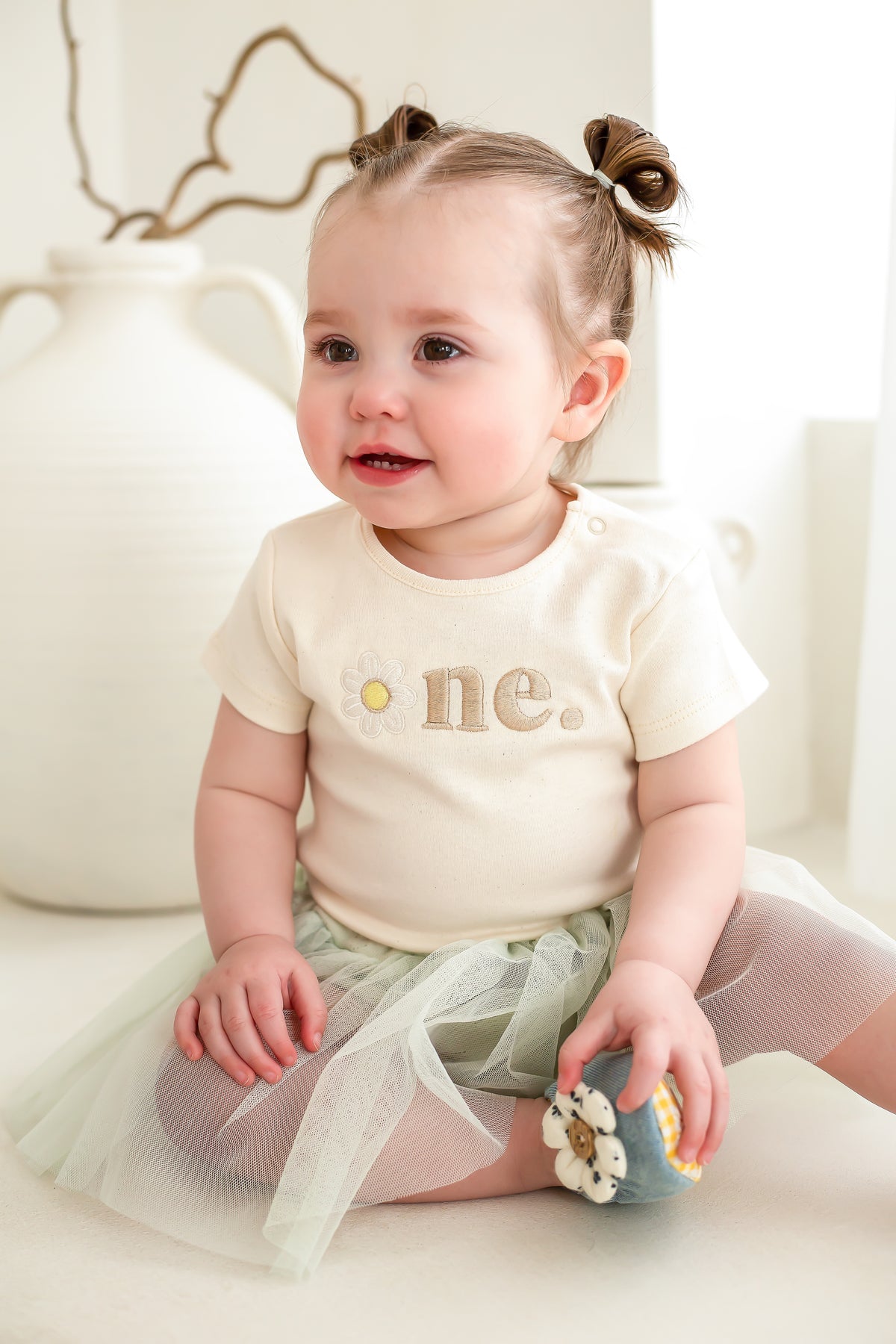 A super cute short sleeve bodysuit, embroidered perfectly with a daisy for the o.
