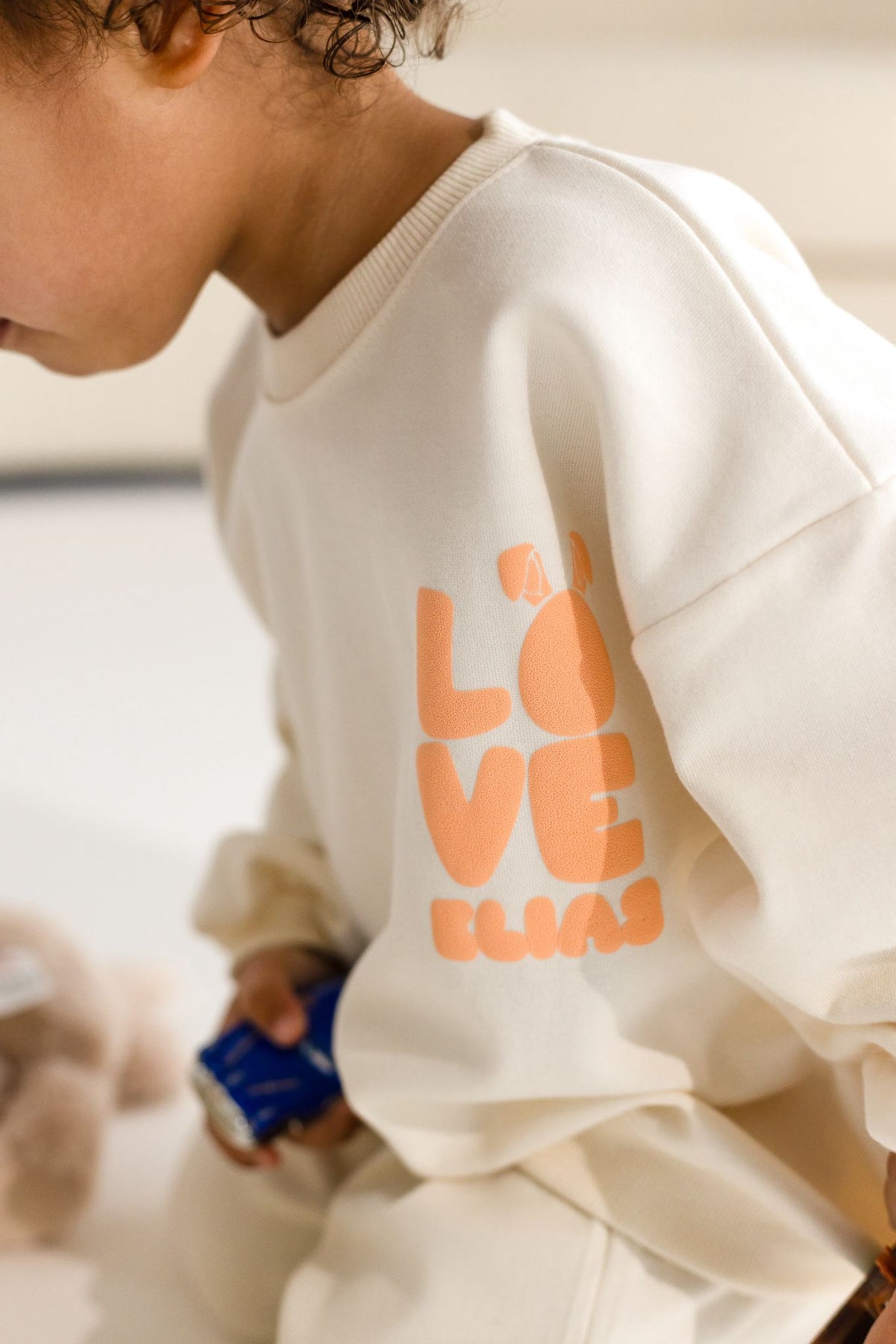 The cream sweatshirt features our personalised LOVE name print, paired with matching joggers for a comfy, stylish look.