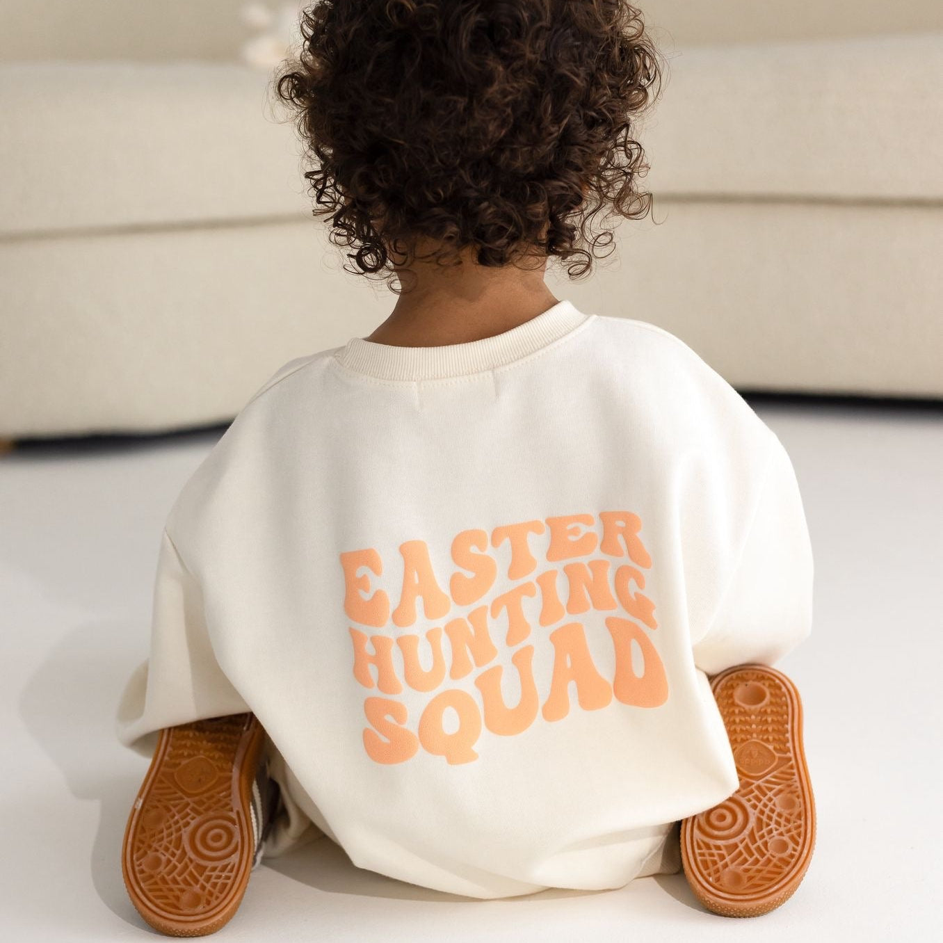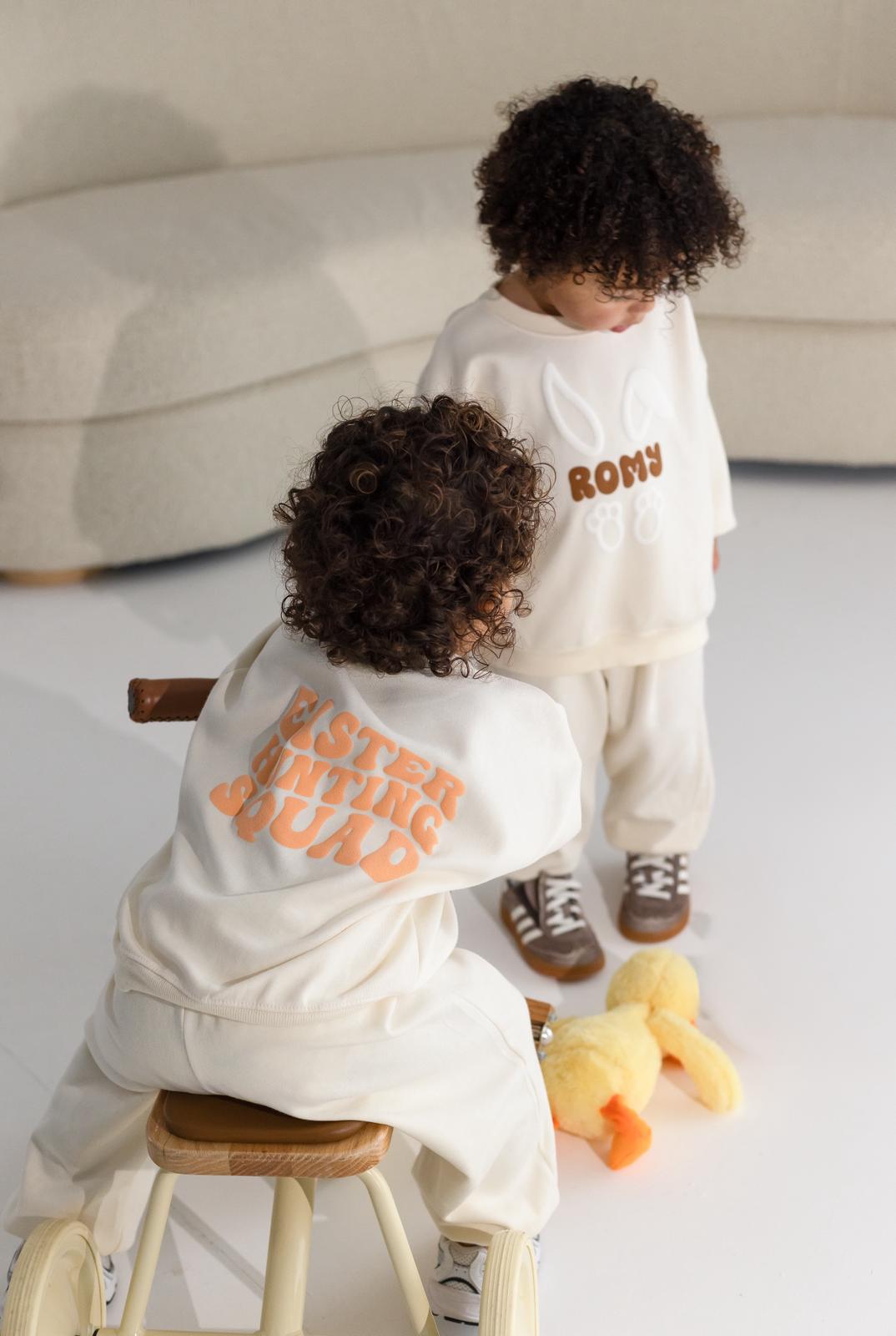 Our spring cream tracksuit comes personalised with your child’s name in our stylish LOVE printed design with an Easter twist — a sweet yet timeless outfit to treasure and re-wear all year round. Made from soft fabric (not fleece lined), it’s perfect for everyday wear, from cosy days at home to outdoor adventures.
