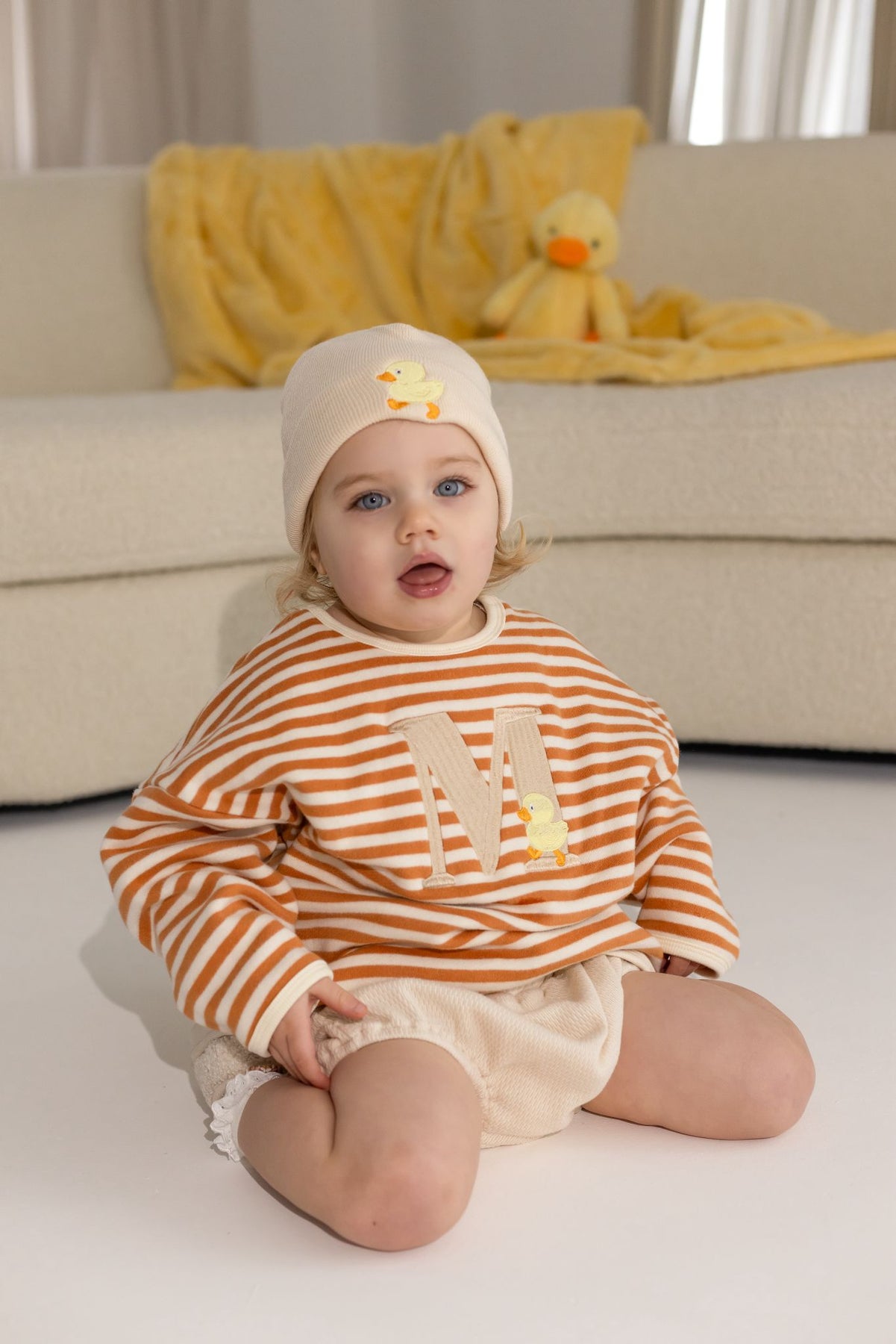 This relaxed fit sweatshirt allows for easy movement, making it perfect for playtime or casual outings. The front is personalised with a large initial and coupled with a sweet duck, adding a timeless, thoughtful touch that makes each piece uniquely theirs.
