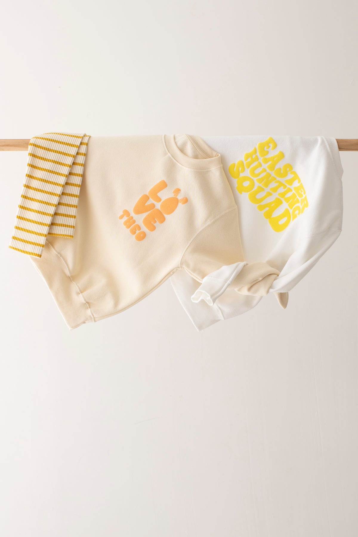 Our new bubble print Easter sweatshirt is a beautiful addition. Personalised with a name on the front.